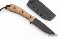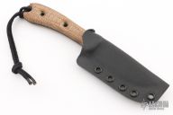 This Rodent Solution by Swamp Rat features a black coated blade, .182" blade stock and 1.078" blade depth, full tang construction. The handle has canvas micarta scales with hollow tube pins and lanyard hole. Comes with a custom kydex sheath. Excellent condition.