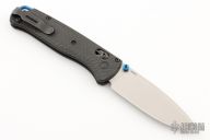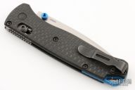 The 535-3 Bugout knife is built with a carbon fiber handle and a satin finished blade with a plain cutting edge.