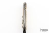 The idea behind the Sebenza has never wavered: to craft the best pocket knife in the world. Premium materials, paired with pristine finishes, and a bank-vault lock-up— all within an incredibly light, precision-made tool. That commitment continues with the new Sebenza 31 with a Ceramic Ball Interface. Like the very first Sebenza, it delivers the same warm “click” and heirloom quality produced from aerospace tolerances. The Sebenza 31 brings finer details to an already fine knife — and another steady, reliable step forward. This one has a stonewashed blade with single thumbstud, and bead blasted titanium frame with box elder inlays. Comes with original box, slip sheath and papers dated July 6, 2021. Excellent condition.