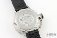 stainless steel AISI 316L, satin hand finish, distinguishing crown on the left side, with a patented protective device. Serial number plate fixed on the left side of the case. Diameter 46 mm.