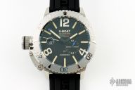swiss automatic mechanical, personalized to U-BOAT specifications. Frequency: 28,800 vibrations per hour. Power reserve: 44 hours. 26 jewels. Skeletonized rotor.