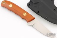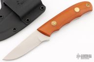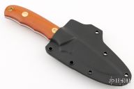 This K-18 Straight Personal features a satin finished blade, .128" blade thickness and .850" blade depth, full tang construction. The handle has antique paper micarta scales, brass pins and lanyard hole. Comes with a kydex sheath with belt clip. Excellent condition.