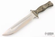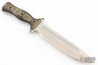 This Team Gemini knife from Busse features a satin finished sterile INFI blade and black canvas micarta scales, .237" blade thickness and 1.550" blade depth. Full tang construction. Has large fullers on blade. Has a couple light scratches, otherwise excellent condition.