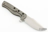 This Harpoon Framelock by Plunkett Blade Works features a hand rub satin finished blade with notched flipper. The handle has a bead blasted titanium frame with matching tip up clip. Nice detent, lockup and blade seating. Comes with a COA dated 28/06/2020 and zipper case. Excellent condition.
