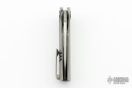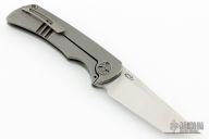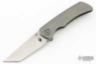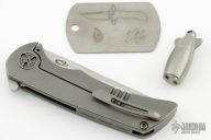 This Spar-K by WingMan EDC features a satin finished tanto blade with notched thumbrest and "Kickstop" flipper. The handle has a tumbled titanium frame with lanyard pin, tip up clip with hidden screws. Comes with original box and papers. #022. Excellent condition.
