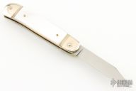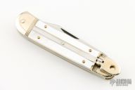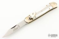 This leverlock auto by Hubertus features a mirror polished blade, nickel silver double bolsters, mother of pearl scales, brass liners and pins. Opens with a nice snap. Very fast opening. Has a few light scratches, otherwise excellent condition.