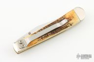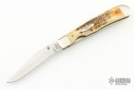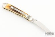 This Kickstart Assisted Opening TrapperLock from Case Knives features a polished clip point blade with single thumbstud. The handle is comprised of nickel silver bolsters and pommel and stag jigged bone covers, brass liners and stainless steel liner lock. Stainless steel backspacer. Includes original box and paperwork. Excellent condition.