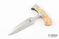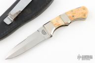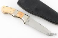 This Folding Push Dagger by Smokey Mountain Knife Works features a satin finished blades with sharpened top edge. The handle has nickel silver bolsters, bone scales, brass liners and stainless steel backspacer. Hasa couple light scratches, otherwise excellent condition. Comes with a black leather boot sheath.