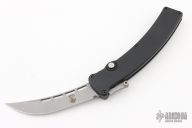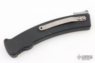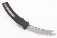 This Scorpion by Rob Dalton features a bead blasted blade and black aluminum handle. Fires via push button and retracts by holding the button and moving the slider on the side of the knife. Excellent condition.