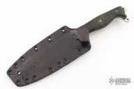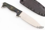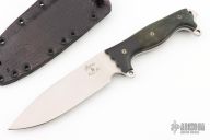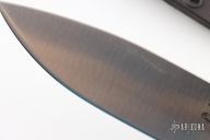 This Custom Shop 3B2 by Busse Knives features a satin finished blade with large choil and extended tang with lanyard holes, .215" blade stock and 1.609" blade depth, full tang construction. The handle has black G-10 bolsters and liners, dyed maple burl scales with grey liners. Comes with a BuyBrown kydex "mutant" sheath. Has some scratches, otherwise excellent condition.