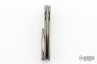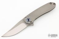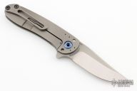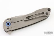 This Tailwhip V2 Flipper by Direware Custom Knives features a two-tone finished blade with a flipper. The handle has a bead blasted titanium frame with a matching tip up clip, anodized titanium pivot. Rides on bearings, nice detent, lockup and blade seating. Comes with original box and card. Excellent condition.