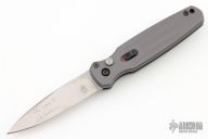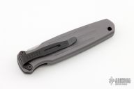 This Covert Auto by Gerber features a bead blast finished spear-point blade with a notched thumbrest. Has a gray aluminum handle with a and safety. Black stainless steel clip, tip down clip. Excellent condition. Comes with original box.