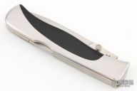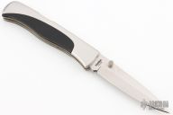 This Mamba Lockback from Blackjack Knives features a satin finished spear point blade with dual thumb studs. The handle has stainless steel scales with black paper micarta inlays. Has some light scratches, otherwise excellent condition.