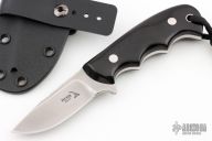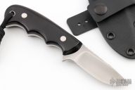 This custom knife by Keith Murr features a satin finish blade and a black linen micarta handle. .136" blade stock. .893" Blade Depth. File work on thumbrest. Full tang construction. Great feel in the hand. Very nice work.  Includes a black kydex sheath.  Excellent condition.