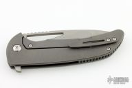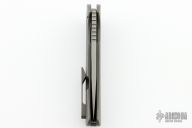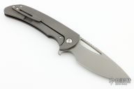 This Archbishop by Ferrum Forge features a tumbled drop point blade with thumb hole and flipper. The handle has a tumbled titanium frame with matching backspacer and tip up clip. Comes with a zipper case. Excellent condition.