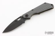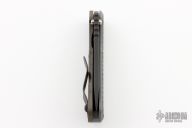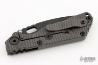 This MS SNG framelock folder by Mick Strider features a black blade and a MEFP aortic gray G-10 and flamed titanium frame and tip up titanium clip. Includes Hinderer "Lock Bar Stabilizer" for maximum reverse lock retention. Nice detent, lockup and blade seating. Has a couple light scuffs, otherwise excellent condition. Comes with a zippered case.