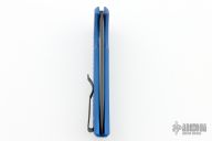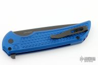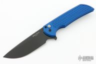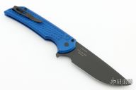 This Mordax by Pro-Tech is a Ferrum Forge design and features a black drop point blade. The handle has milled a blue aluminum frame with black tip up stainless steel clip. Black Lip Pearl inlaid push button. Comes with original box and papers. New from maker!