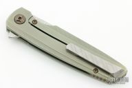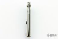 This Specter by Holt Bladeworks features a Hakkapella Damasteel blade with a notched thumbrest and flipper tab.  The handle features a milled and anodized titanium frame, Hakkapella Damasteel tip up pocket clip with hidden screws, anodized hardware. Nice detent, lock up and blade seating. Includes the original box and COA #715. Excellent condition.