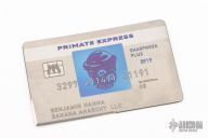 Primate Express Titanium Card Blade by Mummert Knives. Has Fiber Laser Color and Deep Etch. Tungsten carbide edge, RC 72. Comes with original packaging. Excellent condition.