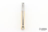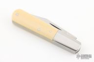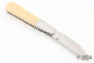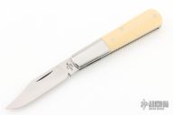 This Slipjoint by TA Davison features a hand rub satin finished blade with a nail nick. The handle has stainless steel bolsters, ivory paper micarta covers with stainless steel pins and liners, stainless steel spring. Comes with zippered case. Has half-stop, flush in all positions. Excellent condition.