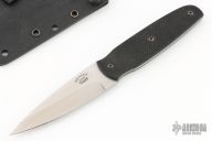 This Kinzhal features a satin finish blade and textured G10 scales. 1/8" blade thickness and 1" blade depth. Full tang construction. #5629. Comes with kydex sheath, excellent condition.