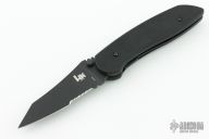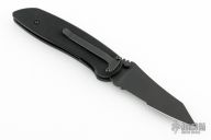 The H&K Scorch Code 3 features a unique dual-action design. The black blade is D2 tool steel with a reverse tanto design with notched thumbrest and dual thumbstuds. The handle is textured black G-10 with black stainless steel liners and tip down clip. Comes with H&K drawstring bag and original box. Has a couple light scuffs, otherwise excellent condition.