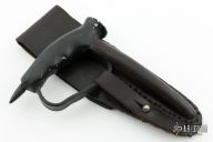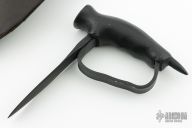 This Robbins of Dudley Punch-Dagger by Ploughshare Forge features a black dagger blade with a black aluminum knuckle grip that has a hammer blow spike on the bottom. Comes with a black leather sheath. Has some minor wear, otherwise excellent condition.