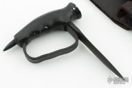This may count as one of Robbins of Dudley's more bizarre designs. In that it was extensively copied by other manufacturers during the Great War, it must have been a popular design as well. There even exist some homemade examples, cobbled together from scrap brass and at least one hollow cast iron one. Another non-Robbins knife has the knuckle bow cast in aluminum integrally with the handle.