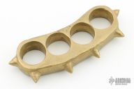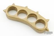 These brass knuckles by Plowshare Forge are .640" thick and has spikes on the front.