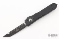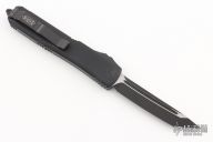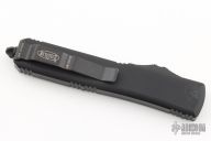 This Ultratech OTF automatic by Microtech features a T/E black blade. Black aluminum frame with a tip down stainless steel clip. Dated 08/2018 and S/N 101430. Comes with original box and papers. Has a couple light scuffs and scratches, excellent condition otherwise.