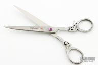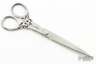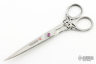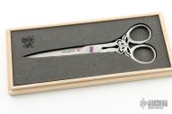 Made in Seki, Japan, Mcusta combines modern technology with traditional Japanese craftsmanship to produce hand finished custom quality production knives. This pair of scissors measures 6.75" long and features a VG-10 core 33 layer damascus stainless steel construction with a butterfly design as part of the handle. Designed for right-hand use. Comes in balsa wood gift box.