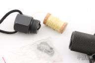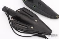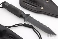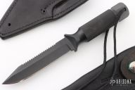 This Aviator by Chris Reeve has a black blade with false top edge and sawteeth, .171" blade stock and .857" blade depth, integral construction with hollow handle. Comes with 2 original black leather sheaths. #143 on the blade. Has some light scuffs, otherwise excellent condition.