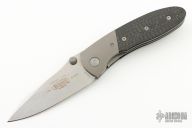 This Lightfoot LCC M/A by Microtech Knives is a Greg Lightfoot design, it has a stonewashed blade with dual thumbstuds and a notched thumbrest. The handle has bead blasted titanium bolsters, carbon fiber scales, stainless steel liners and clip. Dated 08/2000, #0784. Comes with original box, sheath and papers. Excellent condition.