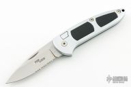 This Boker Top Lock auto features a bead blasted blade with partial serrations. Aluminum frame with rubber inserts. Has a couple light scuffs, otherwise excellent condition.