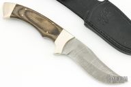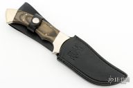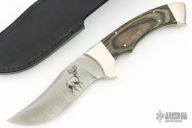 This knife from Rigid Knives features a clip point blade with an etched forest scene and a buck, .145" blade stock 1.322" blade depth, full tapered tang construction. The handle has a nickel silver bolsters with laminated wood scales. Comes with a black leather sheath and original box. Excellent condition.
