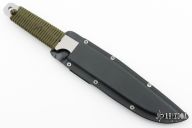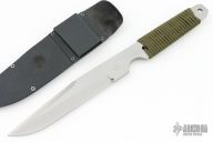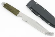 This Throwing Knife by Robert Rippy features a bead blasted blade with sharpened top edge, .191" blade stock and 1.198" blade depth, full tang construction. The handle has a paracord wrap. Has a few light scuffs, otherwise excellent condition. Comes with a kydex sheath.