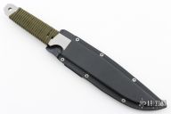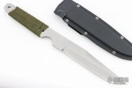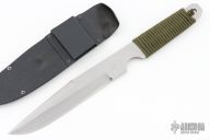 This Throwing Knife by Robert Rippy features a bead blasted blade with sharpened top edge, .190" blade stock and 1.208" blade depth, full tang construction. The handle has a paracord wrap. Has a few light scuffs, otherwise excellent condition. Comes with a kydex sheath.