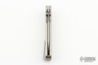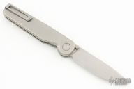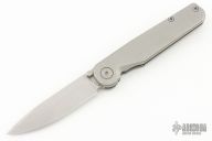 The Rockwall by Tactile Knife features a stonewashed 20CV blade with notched thumbrest and dual thumbstuds. The handle has a milled titanium frame with a tip up stainless steel clip and backspacer. Excellent condition.