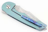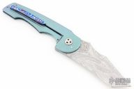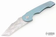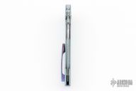This Hooligan Framelock Flipper by Glenn Are Hovin features a Damasteel blade with false top edge and flipper. The handle has a milled and anodized titanium frame with mokuti tip up clip and backspacer. Strong detent, nice lockup and blade seating. Comes with original box. Excellent condition.
