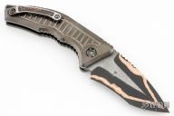 Home Products Medusa Auto - DLC Titanium W/ Frag Pattern Hand Ground Baker Forge Damascus Recurve Fat Carbon Snake Skin