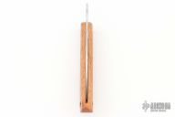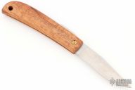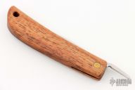 This friction folder by Yoshimi Kotoh features a tool steel blade with friction folder style opening. The handle is Hawaiian Koa wood with a lanyard hole at the butt. Comes with a leather pouch. New condition.