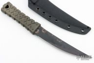 The largest blade in our Shobu Zukuri series, with the same classic grind for excellent lateral strength and cutting ability. This full sized knife is designed for maximum utility in an easily carryable size. Featuring a tough Vanadis 4 Extra blade, for serious field use, and green canvas micarta handle scales with brass pins. We produced this blade with TRC Knives because of their reputation for outstanding craftsmanship and attention to detail. The SZT 002 is a knife made for hard use, but with the refinement of a collector’s piece. This is an individually numbered batch of 150 pieces.