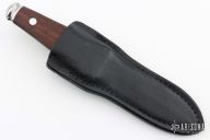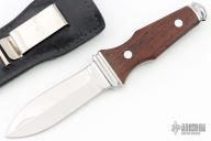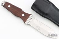 This is a very attractive boot knife from AG Russell. This is the older model made in Solingen, Germany. The mirror polished double edged blade is .145" thick and 1.122" deep at the ricasso and double-edged. Scales are rosewood. Integral construction with aluminum pins. Comes with a brown leather sheath. has a few light scratches, otherwise excellent condition.