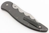 This Sifu axis lock folder has a stonewashed blade with dual thumb studs. Handle is carbon fiber with stainless steel liners and black stainless steel tip up clip. Has some wear on the clip, otherwise excellent condition.