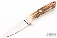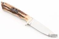 This Model 2 by Corbit Sigman features a mirror finished drop point blade, .197" blade stock and 1.035" blade depth, full tapered tang construction. The handle has nickel silver guard and stag scales with nickel silver pins. Excellent condition.