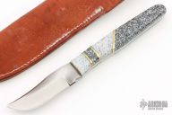 This Bowie by Anza Knives features a blade made from a file, synthetic scales, .133" blade thickness and .754" blade depth, full tang construction. Comes with a brown leather sheath. Excellent Condition.