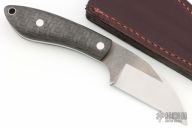 This Fall Creek by Northwoods Knives features a satin finished blade with .127" blade stock and .978" blade depth, full tang construction. The handle has carbon fiber scales with lanyard hole and aluminum escutcheon. Comes with a brown leather sheath. Excellent condition.