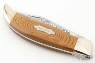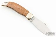This Mariner Slipjoint by Smokey Mountain Knife Works features a mirror polished blade with nail nick and etching on the blade. The handle has nickel silver bolsters, paper micarta covers, brass liners and stainless steel springs. #301 on the bolster of 600 made. Has a couple light scratches, otherwise excellent condition.