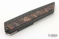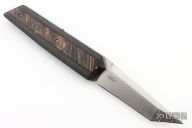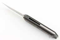 The Maserin Am-4 offers a sophisticated style and a tough build that will serve you well in all of your endeavors. This model is built with a tanto blade and a carbon fiber handle with black wood onlays. The M390 steel blade opens with authority with a low profile tang flipper. A hidden ghost clip finishes off the stylish design.