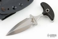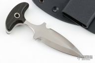 This MercWorx Seraphym Push Dagger features a hand rub satin finished double edged blade with .232" blade stock and 1.024" blade depth, full tang construction. The hand has black canvas micarta scales. Comes with a kydex sheath. The blade has some light scuffs and scratches, otherwise great condition.